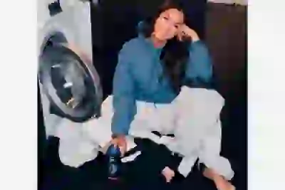 Звезда телешоу MTV Паттисон на снимке сидит рядом со стиральной машиной, держа в руках емкость с новым продуктом от Lenor. В описании говорится, что благодаря ему спортивный костюм телезвезды «пахнет поразительно свежо» и «делает процесс стирки фактически радостным».